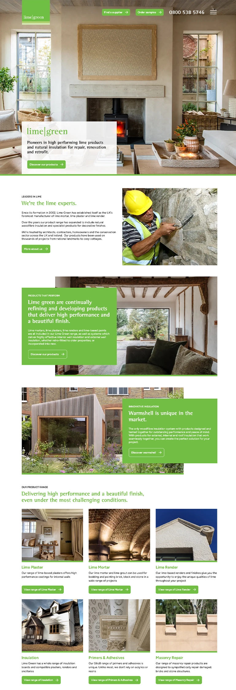 We created the Lime Green brand at launch and have shaped its evolution ever since, developing a clear, confident identity that reflects their expertise in natural building materials and retrofit. The brand balances technical authority with approachability, helping them connect with architects, contractors and homeowners alike.