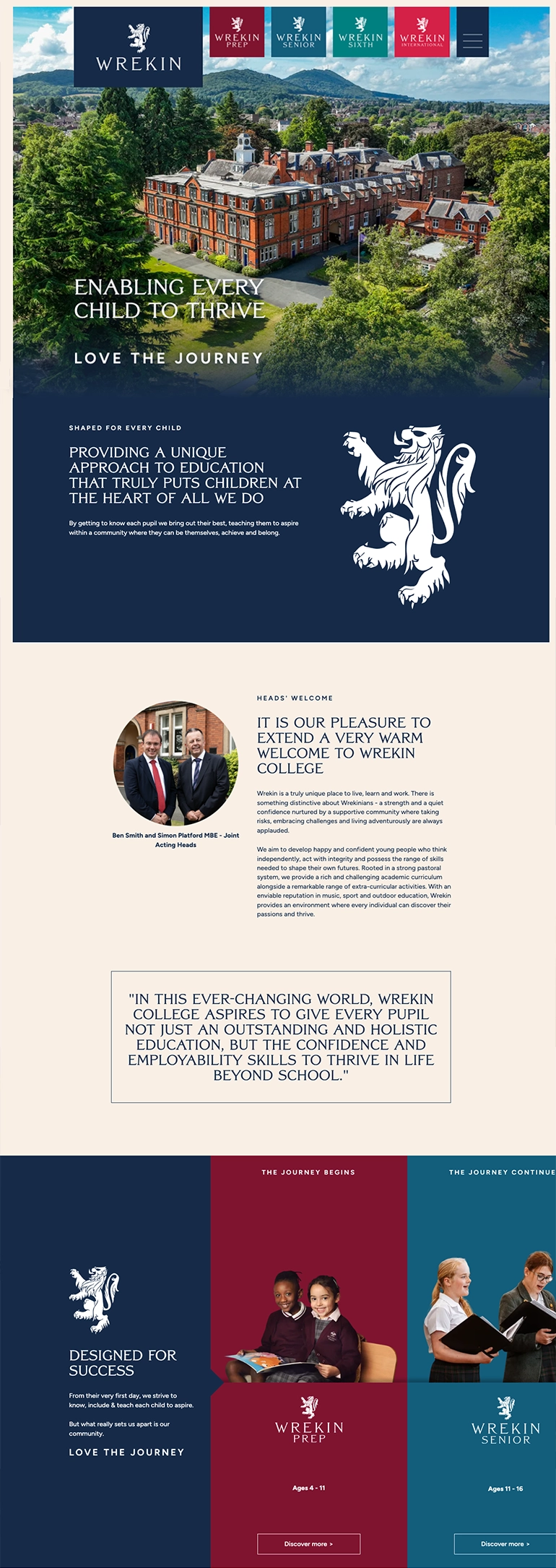 We worked with Wrekin College to define a clear brand strategy, shaping their positioning, messaging and core narrative around helping every pupil become their best self. This created a strong foundation that reflects both academic ambition and personal growth.